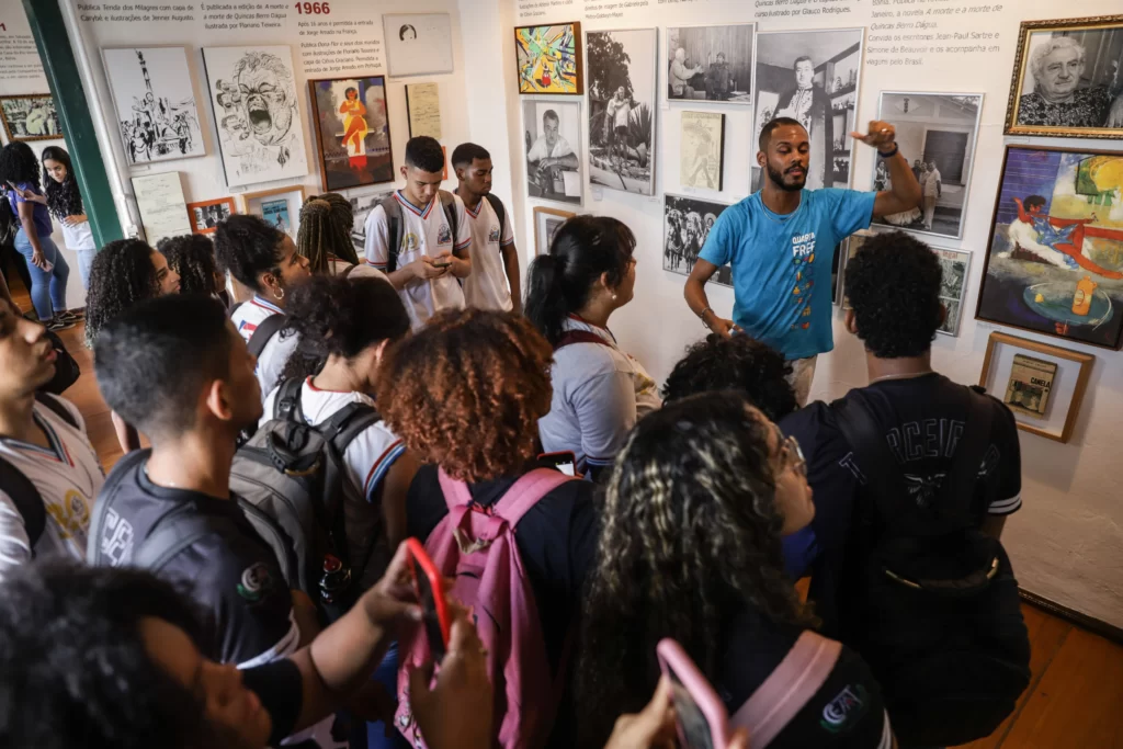 “Está sendo uma experiência incrível”.Após a visita, os alunos foram ao Teatro Sesc-Senac para encerrar o passeio em grande estilo com um bate-papo e apresentações sobre a escritora brasileira Carolina Maria de Jesus.